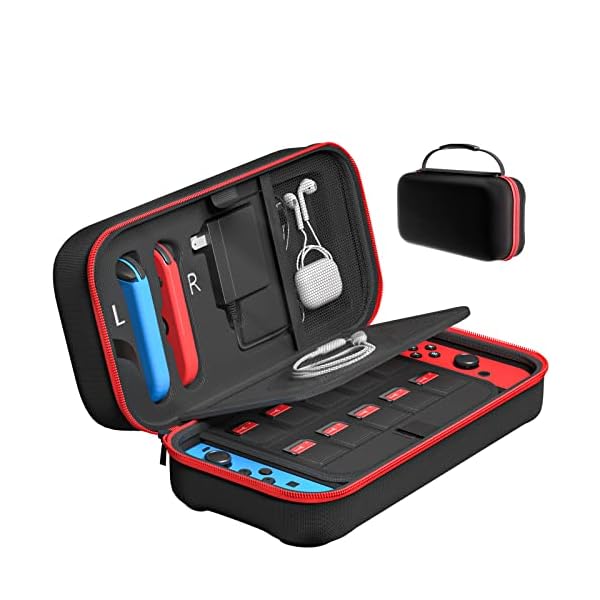Fenolical Switch Carrying Case Compatible with Nintendo Switch/Switch OLED, – Fit Joy-Con and AC Adapter, Portable Hard Shell Pouch Carrying Travel Game Bag for Switch Accessories Holds 20 Game Cartridge, Red