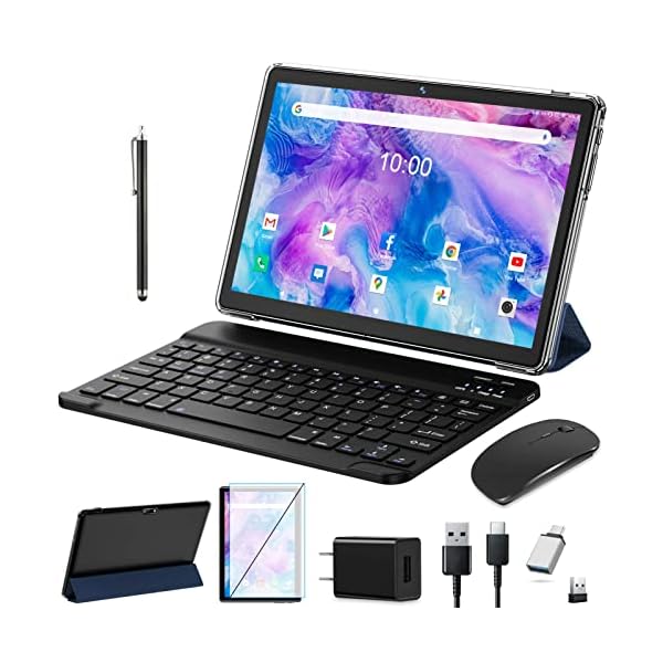 2023 Newest Tablet 10 Inch, Android 11 Tablet Newest Quad-core Processor, 2 in 1 Tablet with Keyboard, 64GB ROM + 4GB RAM Storage, 128GB Expandable, 5G WiFi, Bluetooth, GPS, 1280 * 800 HD Display