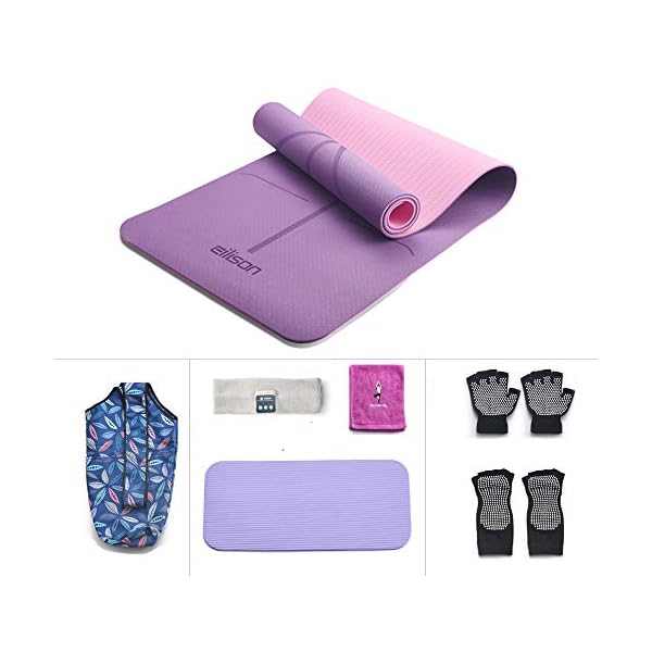 EILISON PROFESSIONAL Yoga Mats, 1/3 Inch Extra Thick Eco Friendly Double-Sided Non Slip, High Density TPE Yoga Mats for Women Men, Fitness and Exercise Mat(7 Pieces Set)