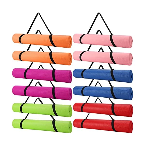 12 Pcs Bulk Yoga Mats with 12 Pcs Carrying Straps, 68 x 24 x 0.16 Inch Exercise Yoga Mat with Strap, Non Slip Fitness Mat for Yoga, Workout, Stretching