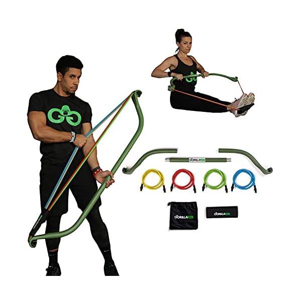 Travel Gorilla Bow Portable Home Gym Resistance Bands and Bar System for Fitness, Weightlifting and Exercise Kit, Full Body Workout Equipment Set