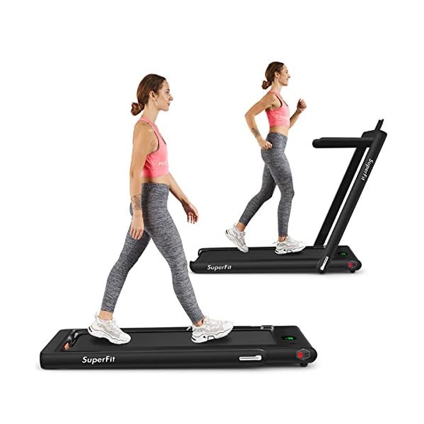 Goplus 2 in 1 Folding Treadmill, 2.25HP Superfit Under Desk Electric Treadmill, Installation-Free with Blue Tooth Speaker, Remote Control, APP Control and LED Display, Walking Jogging for Home Office