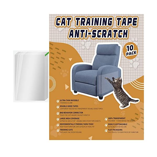 Anti Scratching Tapes, 10pcs Furniture Protectors For Cats, 0.1mm Cat Couch Protector, Clear Double Sided Cat Scratch Deterrent Tape for Furniture, Couch, Sofa, Chair and Leather, Cat Training Tape