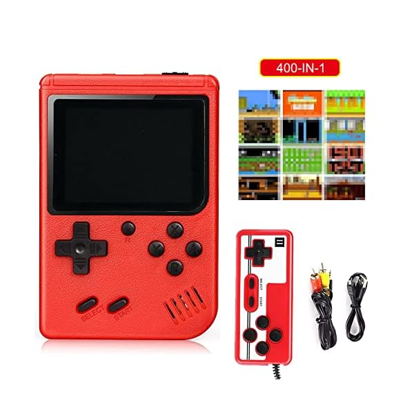Handheld Game Console-Portable Retro Video Game with 400 Classic FC Games, 2.8 Inch Color Screen, Support TV Connection & Two Players, 1020mAh Rechargeable Battery Present for Kids (RED)