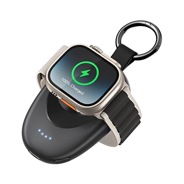 GagaKing Portable Charger for Apple Watch, 1400mAh iWatch Charger Wireless Fast Charging Power Bank, Magnetic Travel Car Keychain Charger for Apple Watch Series 8/7/6/5/4/3/2/SE/Ultra, Black
