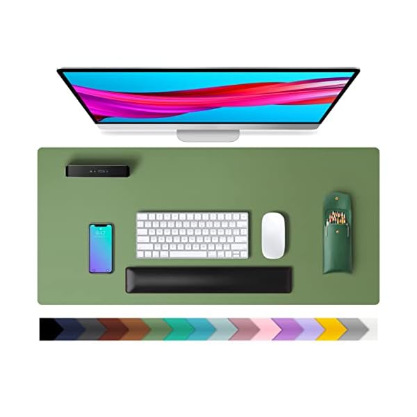 Leather Desk Pad Protector,Mouse Pad,Office Desk Mat, Non-Slip PU Leather Desk Blotter,Laptop Desk Pad,Waterproof Desk Writing Pad for Office and Home (31.5″ x 15.7″,Olive Green)