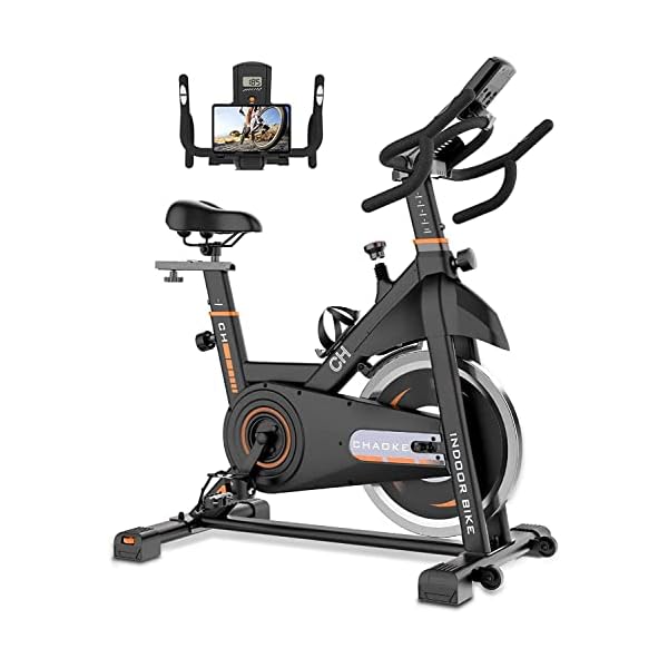 Exercise Bike Stationary, CHAOKE Indoor Cycling Bike with Heavy Flywheel, Comfortable Seat Cushion, Silent Belt Drive, iPad Holder and LCD Monitor for Home Gym Cardio Workout Training