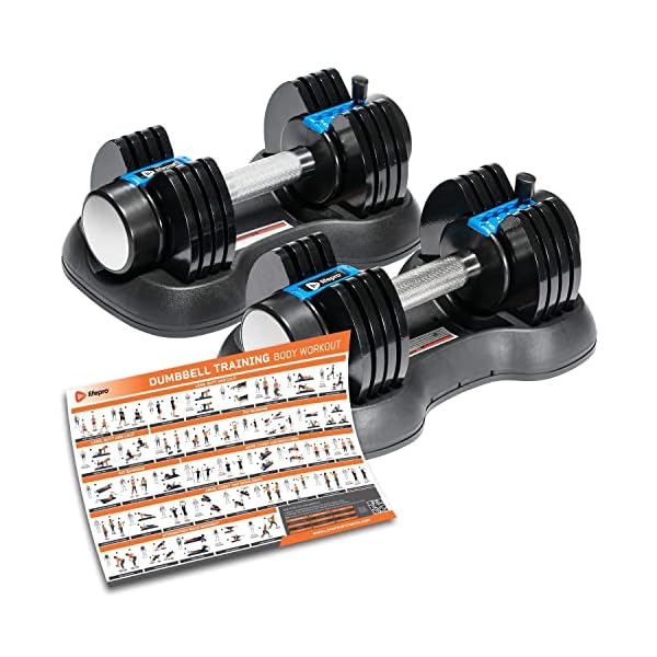 Lifepro Adjustable Dumbbell 55lbs – Single Weight Set for Home Gym with Anti-Slip Handle & Easy Mechanism – Adjustable Weights Dumbbell for Women & Men with Storage Rack – Single Dumbbell 5-55lbs