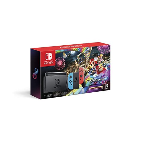 PURTCH Newest Switch w/ Neon Blue & Neon Red controller + Mario Kart 8 Deluxe Game, 6.2″ Touchscreen LCD Display, 802.11AC WiFi, Bluetooth 4.1 – Red and Blue