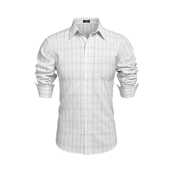 COOFANDY Mens Dress Shirts Regular Fit Button Up Shirts Wrinkle-Free Long Sleeve Plaid Shirts