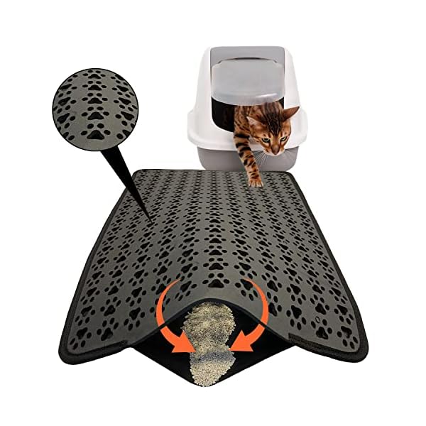 Cat Litter Mat Litter Trapping Mat, Double-Layer Kitty Paw Design Mat, Waterproof, Easy to Clean, Non-Slip, Scatter Control, Sifting (Black)