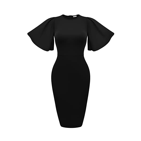Memoriesea Women’s Basic Bodycon Ruffle Flared Short Sleeve Pencil Midi Dress