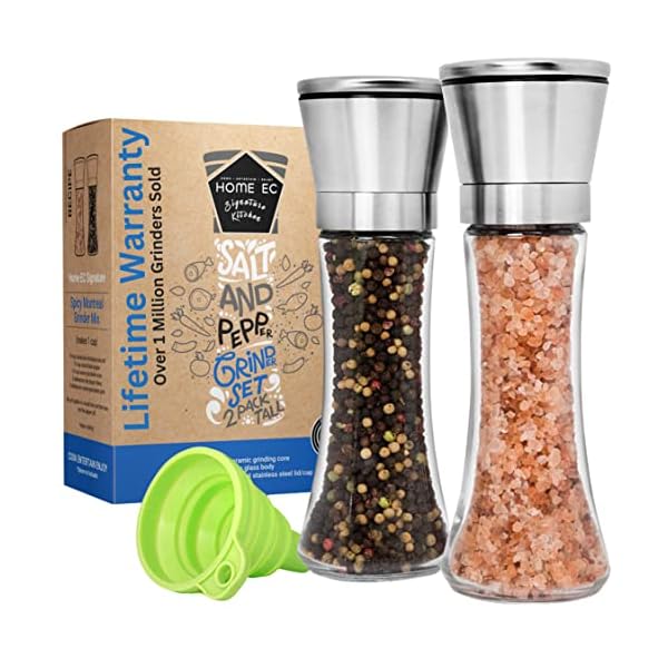 HOME EC Original Salt and Pepper Grinder Set – Adjustable Sea Salt Grinder & Pepper Grinder – Stainless Steel & Glass Salt and Pepper Shakers – Pepper Mill & Salt Mill – Modern Kitchen Accessories