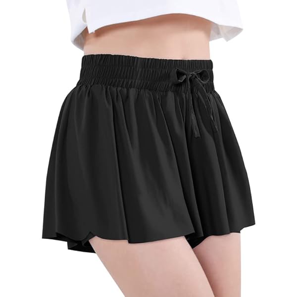 Girls Athletic Flowy Shorts with Inner Pockets Butterfly Running Active Workout Sports Elastic Waist Shorts for Kids