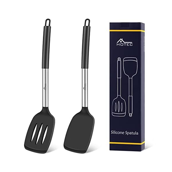 HOTEC Heat Resistant Silicone Solid Turner, Slotted Kitchen Spatulas set kitchen cooking utensils for Nonstick Cookware BPA Free