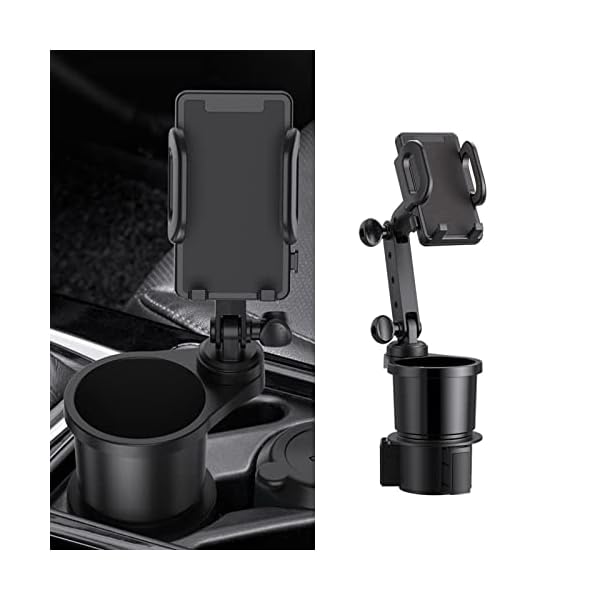 neynavy 1 PC Car Cup Holder with Cellphone Mount, 360° Rotation Universal Cup Holder Expander Adapter Compatible with iPhone, Samsung and All Smartphones (Black)