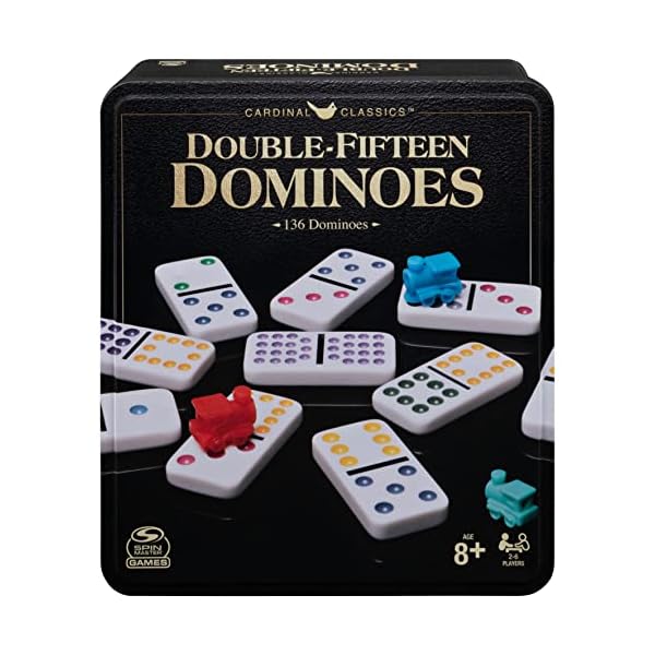 Cardinal Classics Double Fifteen Dominoes Set in Storage Tin Dominoes for Kids Family Games Adult Games Dominoes Set for Adults & Kids Ages 8+