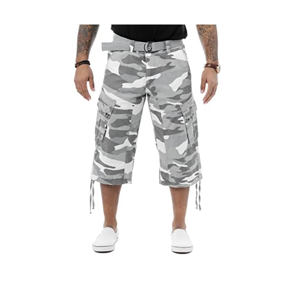 X RAY Men’s Belted Tactical Cargo Long Shorts 18″ Inseam Below Knee Length Multi Pocket 3/4 Capri Pants