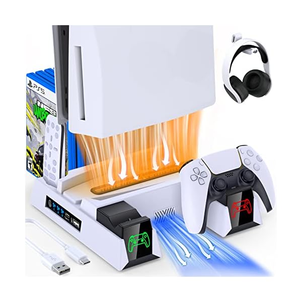 Gammeefy PS5 Accessories Cooling Station with Controller Charging Station for PS5 Digital/Disc Version Console, PS5 Stand Holds PS5 Controller, Headset, Remote Control, 11 Game Slots