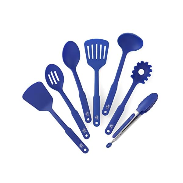GreenLife Cooking Tools and Utensils, 7 Piece Nylon Set including Spatulas Turner Spoons and Tongs, Dishwasher Safe, Blue