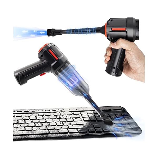 Compressed Air Duster & Mini Vacuum Keyboard Cleaner 3-in-1, New Generation Canned Air Spray, Portable Electric Air Can, Cordless Blower Computer Cleaning Kit