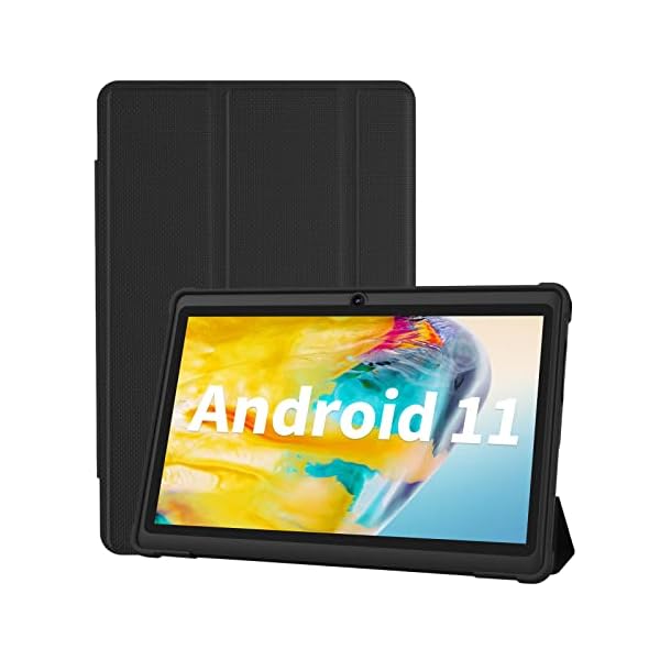 VOLENTEX Tablet 7 Inch Android 11 32GB Storage (Expandable 128GB) 2GB RAM Tablets, Quad Core Processor Tablet PC, Dual Camera, WiFi, Type C, Include Tablet Leather Case (Black)