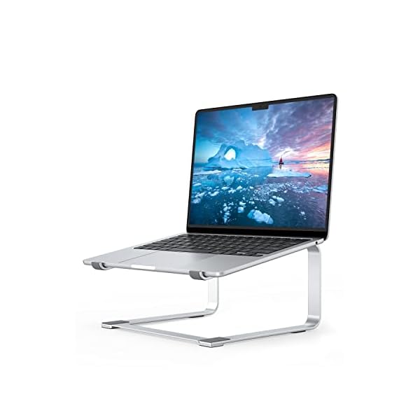 SOUNDANCE Laptop Stand for Desk, Metal Computer Riser, Heavy Stable PC Holder, Ergonomic Laptops Elevator for 12 to 17.3 Inches Notebook Computer, Silver