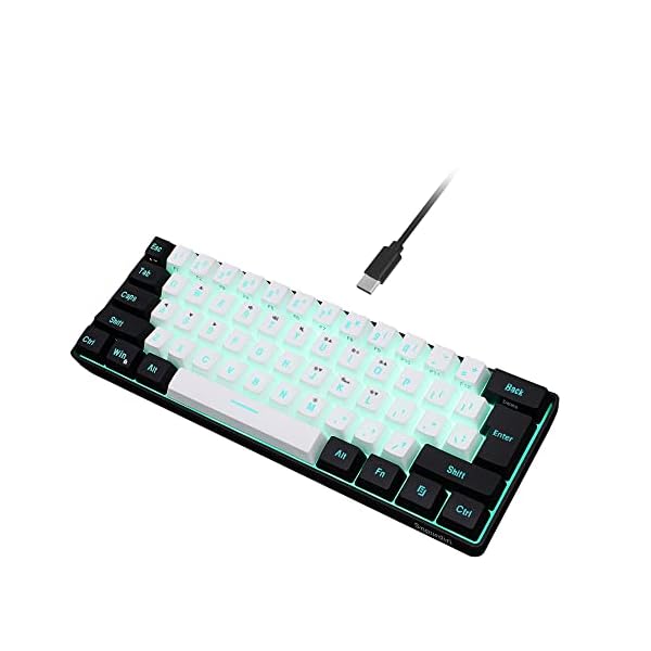 Snpurdiri 60% Wired Gaming Keyboard, RGB Backlit Ultra-Compact Mini Keyboard, Waterproof Small Compact 61 Keys Keyboard for PC/Mac Gamer, Typist, Travel, Easy to Carry on Business Trip(Black-White)