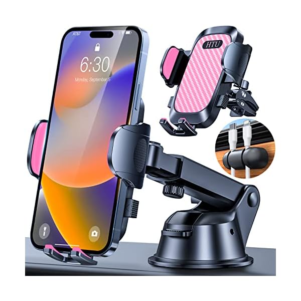 HTU Cell Phone Holder for Car [Upgraded Super Suction & Stable] Handsfree Car Phone Holder Mount Dashboard Windshield Air Vent Car Mount for iPhone 14 13 12 Pro Max Samsung Smartphones & Car, Pink
