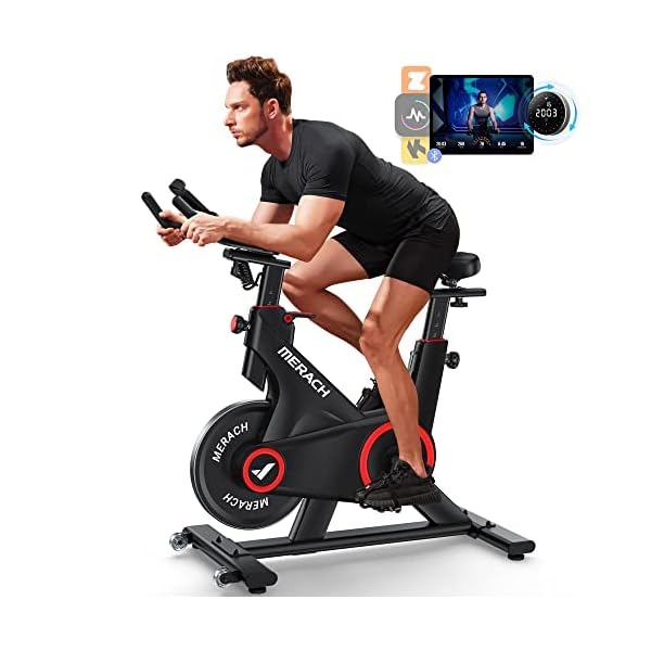 MERACH Auto Resistance Exercise Bike for Home, Bluetooth Stationary Bike with APP Data Tracking, Indoor Cycling Bike with Magnetic Resistance, SPD Pedals, Silent Belt Drive and 350lbs Weight Capacity