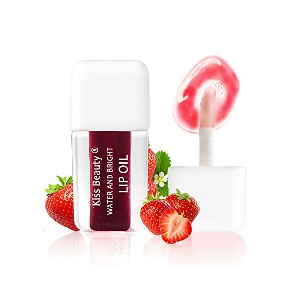 Hydrating Lip Glow Oil,Lip Gloss Tinted Lip Balm Transparent Toot Lip Glow Oil Shimmering Long Lasting Nourishing Gloss Non-sticky for Repairing Lightening Lip Lines Lip Care Products(Strawberry)