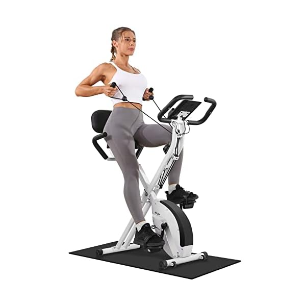 Micyox MX-600 Exercise Bike, Magnetic Foldable Indoor Cycling Bike with LCD Display and Heart Rate Sensor Home Workout Bike with Resistance Bands Space-saving Fitness Exercise Equipment