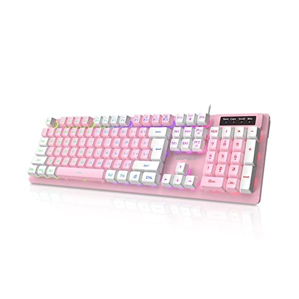 NPET K10 Wired Gaming Keyboard, RGB Backlit, Spill-Resistant Design, Multimedia Keys, Quiet Silent USB Membrane Keyboard for Desktop, Computer, PC(Lotus)
