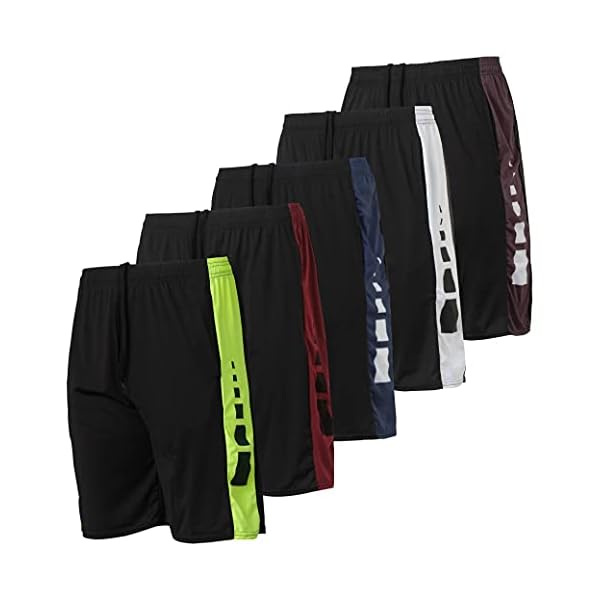 Real Essentials 5 Pack: Men’s Dry-Fit Sweat Resistant Active Athletic Performance Shorts