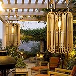 Livinlarge Solar Lantern Outdoor Waterproof, Large Solar Rattan Lantern Outdoor Hanging with Handle, Bright Solar Outdoor Lights with Edison Bulb for Garden Patio Yard Tabletop Decoration
