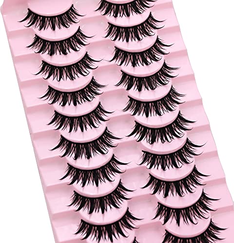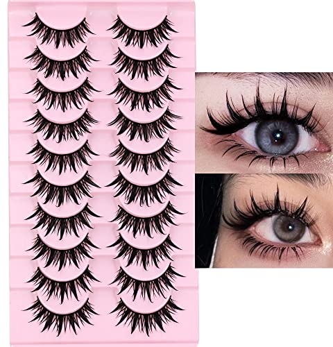 AUGENLI 10 Pairs Manga lashes Cosplay Eyelashes Wet Look Japanese Style Makeup 16mm Thick Mink Eyelash Extension Masquerade Party Eyelashes, Create Gorgeous Makeup (04)