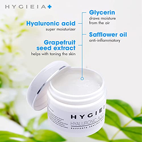WITH BOTANICALS; Say goodbye to hyaluronic acid cream filled with questionable ingredients; Our womens and mens face moisturizer features calming safflower oil as well as grapefruit seed extract to naturally tone and balance; Better still, Hygieia Skin’s moisturizer face cream is cruelty free and contains no sulfates