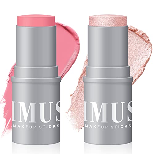 KIMUSE Highlighter Makeup Stick Duo-Cream Blush Stick & Highlighter Trimming Stick-Creamy & Pigmented, Long Lasting & Vegan Face Make Up Sticks