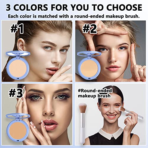 Oil Control Matte Flawless Face Pressed Powder with Brush -1Pcs Long-lasting Waterproof Oil Control Soft Focus Effect Make Up Setting Powder, Minimizes Pores & Fine Lines Face Cosmetic, Birthday, Mother’s Day, Thanksgiving Gift for Women