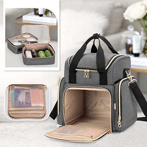 LUXJA Travel Makeup Bag with 2 Removable Cases, Cosmetic Bag with Multiple Storage Sections (Patent Pending), Gray