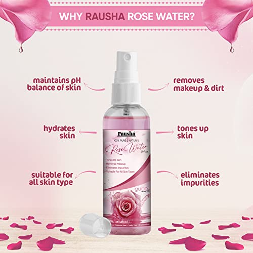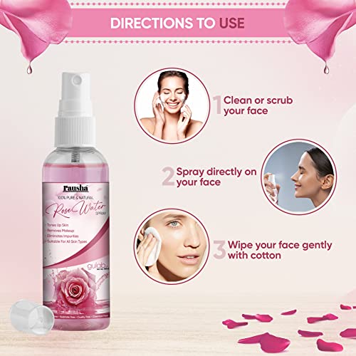 DIRECTION TO APPLY MIST SPRAY: Suitable for daily use in a regular skincare routine. Simply apply Rausha Rose Water Spray toner all over your face and neck, then gently pat and dry your skin. Apply it for skin hydration and moisturization.