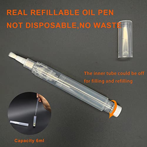 URGINO 3-Pack 6ml Real Refillable Cuticle Oil Pens, Reusable Empty Pen to Easy Refill Jojoba Oil/Nail Oil/Hair Oil, Single Hand Press Transparent Cosmetic Container Pens Applicator (White)