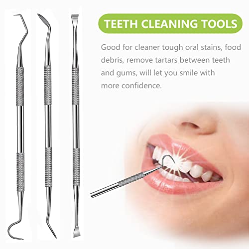 ✅PROFESSIONAL TOOTH CARE: Teeth cleaner care tool includes dental probe, tartar scraper, sickle scaler. The tartar scraper can remove the stubborn tartars and the dental probe is more effective than usual dental floss toothpicks, whitening teeth and fresh breath.