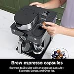 The Ninja Espresso & Coffee Barista System is a single-serve espresso system that also brews coffee grounds, with brew sizes ranging from single cup, to travel mug, to 12-cup carafe. Brew coffee grounds in up to 9 sizes and 3 brew styles: Classic, Rich, and Over Ice. Use your favorite espresso capsules to brew in 3 different styles: Espresso, Lungo, and Over Ice. With Barista Plus Technology, this 19-bar pressure system delivers an ultra-flavorful espresso with a silky-smooth crema by brewing at the optimal temperature and pressure. Create cappuccinos, lattes, and other coffeehouse drinks with the built-in, fold-away frother.