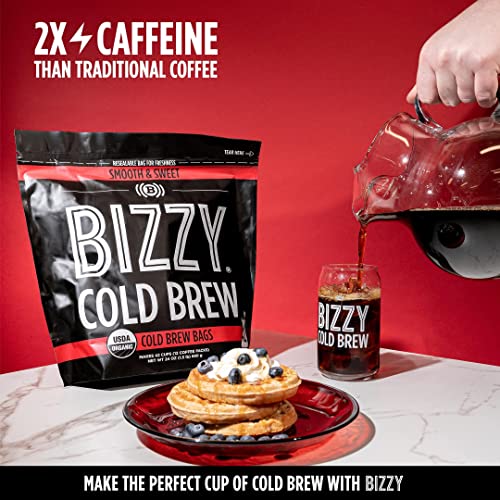 Bizzy Organic Cold Brew Coffee | Smooth & Sweet Blend | Coarse Ground Coffee | Micro Sifted | Specialty Grade | 100% Arabica | Brew Bags | 12 Count | Makes 42 Cups