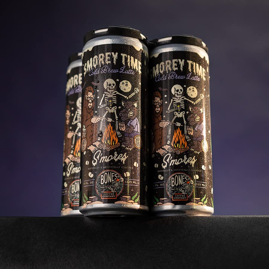 Bones Coffee Company S’morey Time Cold Brew Latte S’mores & Graham Crackers Flavored Coffee | Ready To Drink 100% Cold Brew Coffee Can | Smooth & Sweet Blend Cold Brew Cans | 11 Fl Oz Can (4 Pack)