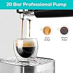 ☕【Professional 20 Bar Pressure System】: Semi-Automatic, 2-in-1 Espresso Maker with 20-bar professional pump and 1350W powerful motor. This 20 bar pressure espresso maker gives you top quality extraction, resulting in a more fragrant and rich aroma. You can create an cappuccino, latte or flat white at home or office with our stainless steel espresso maker.