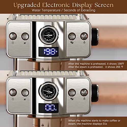 【20 Bar Professional Pump Pressure】20 Bar pressure espresso coffee maker with an authentic Italian made pressure pump that gives you top quality, even extraction of flavors, resulting in more a fragrant aroma and rich crema. The clear temperature dial and piezometer can observe the temperature and pressure changes