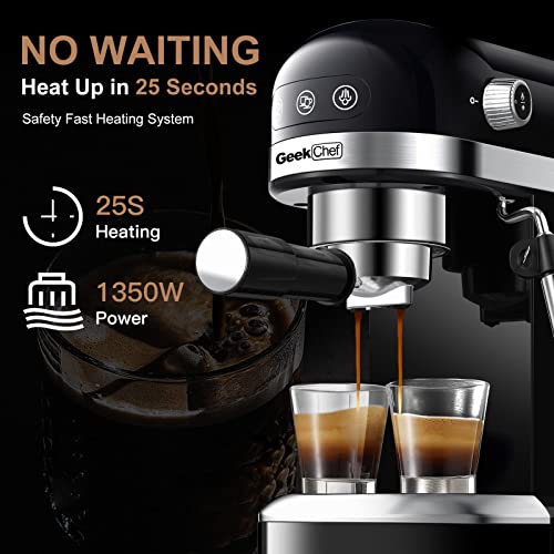 Geek Chef Espresso Machine 20 Bar, Fast Heating Automatic, Compact Coffee Maker with Milk Frother Steam Wand, Latte & Cappuccino Maker for Espresso, 1.4L Water Tank, 1350W