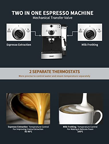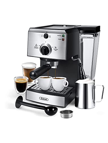 Gevi Manual Espresso Machines Espresso Machines 20 Bar Fast Heating Automatic Cappuccino Coffee Maker with Foaming Milk Frother Wand for Espresso, Latte Macchiato, 1.2L Removable Water Tank, 1350W, White